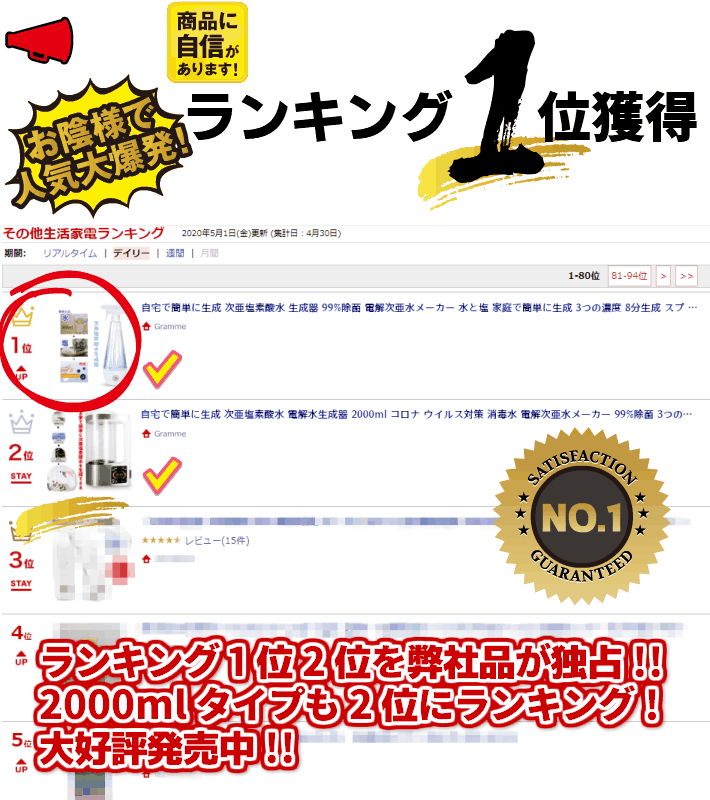 \買うなら今日お得/タイムセール3%offクーポン発行中 コロナに負けるな 99%除菌 水と塩だけで 生成 次亜塩素酸水 殺菌 消毒 滅菌 安全無害