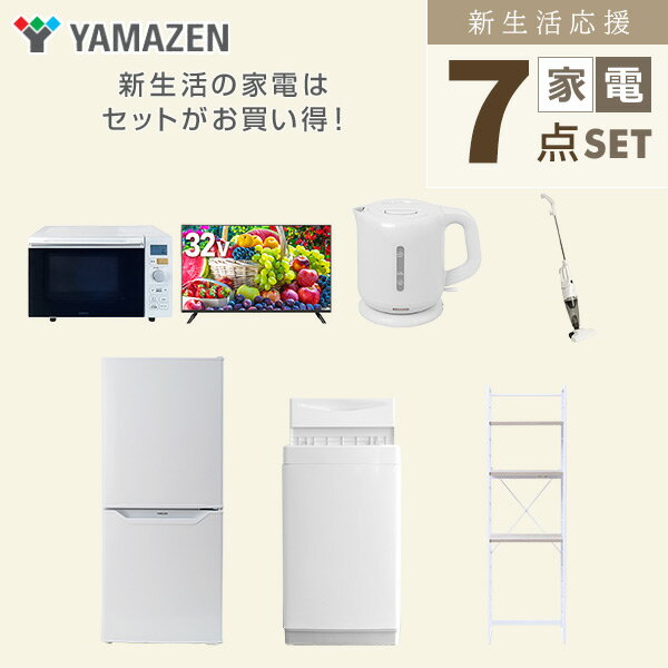 新生活家電セット 7点セット 一人暮らし (6kg洗濯機 106L冷蔵庫 オーブンレンジ 32型液晶テレビ 電気ケトル スティッククリーナー 家電収納ラック) ひとり暮らし 単身赴任新 学生 入学 おすすめ 山善 YAMAZEN【送料無料】