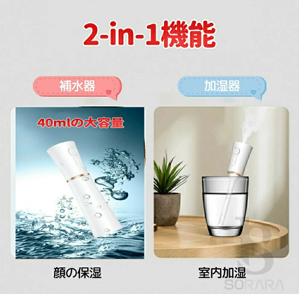 【楽天スーパーSALE 半額!】ハンディ加湿器 ハンディミスト美顔器 シンプル ハンディ加湿器 スチーマー ボトル加湿器 USB 加湿器 コードレス 持ち運び スチーム 保湿 加湿器 充電式 毛穴ケア 加湿 乾燥予防 携帯 化粧水 美肌 コンパクト