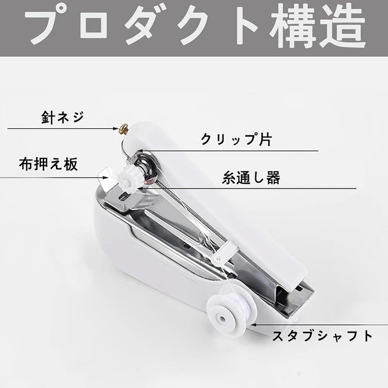 ミニミシン ハンドミシン 片手で縫える 手持ち コンパクト ポータブル 操作簡単 小型 裾上げ 便利 手作り 縫い物 縫製 家庭用 初心者適用 ホワイト
