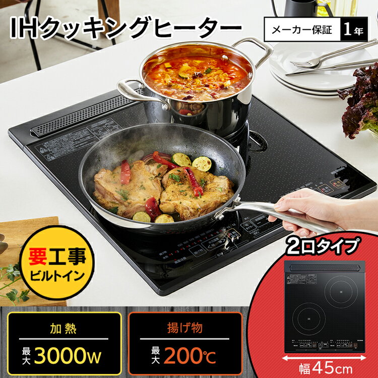 2口 IH コンロ IHコンロ 1400W キッチン 調理 揚げ物対応 IH調理 IHヒーター 工事不要 アイリスオーヤマ