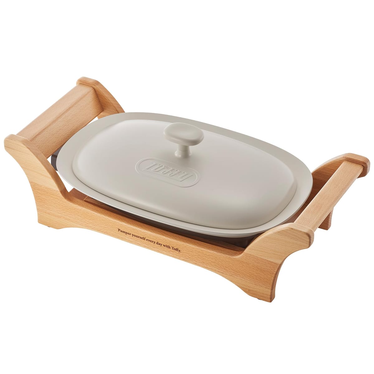 【Toffy/トフィー】 オーバルグリルプレート K-GP1 ヒーター一体構造 セラミック ホットプレート 焼く/煮る/蒸す/炒める 230℃ リアルウッド 映え