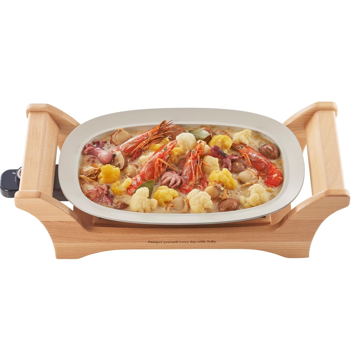 【Toffy/トフィー】 オーバルグリルプレート K-GP1 ヒーター一体構造 セラミック ホットプレート 焼く/煮る/蒸す/炒める 230℃ リアルウッド 映える おしゃれ K-GP1