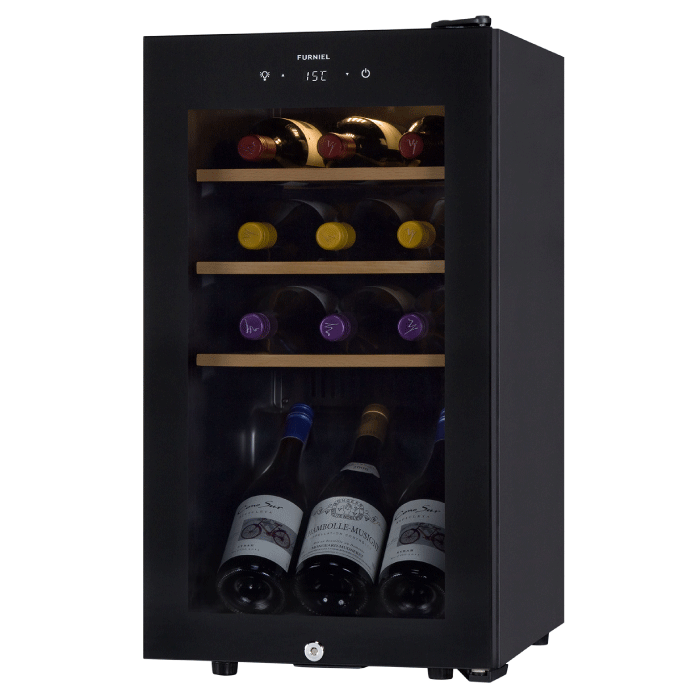 ●8-18℃で温度設定ができるので、ワインの種類に合わせて適温に調節できます。振動が少なく静音のペルチェ式なので、寝室に置いても音が気になりません。振動が少ないので、ワインの劣化を防ぐ事ができます。黒を基調としたシックなデザインで、リビングや寝室にもインテリアとして置けます。●【商品サイズ(約mm)】W252×D500×H450【商品重量(g)】9500■素材:鋼板、ABS、ガラス8から18℃で温...