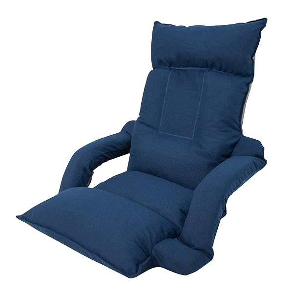 座椅子 ひじ掛け付き ハイバック 低反発 背もたれ・頭部 14段階調整 肘掛けリクライニングに連動 1人掛け フロアチェア 座椅子 (ネイビー)